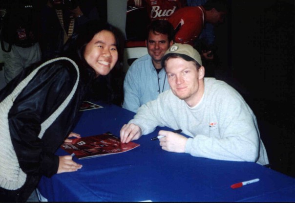 I was such a big fan that I won passes to meet him when he came to Norfolk in 2002 for arena car racing. I was so excited. I had my calendar all ready for him to sign. And I knew what I was going to say to him. I was in college at the time so I was going to say something like “Oh, you should come to Virginia Tech and party with us sometime.” Because you know he totally would have. (*sarcasm*) Instead in typical awkward Deborah fashion, what came out was “You’re hotter in person than you are on TV!” His response “Um….thanks.” And then this picture was taken.