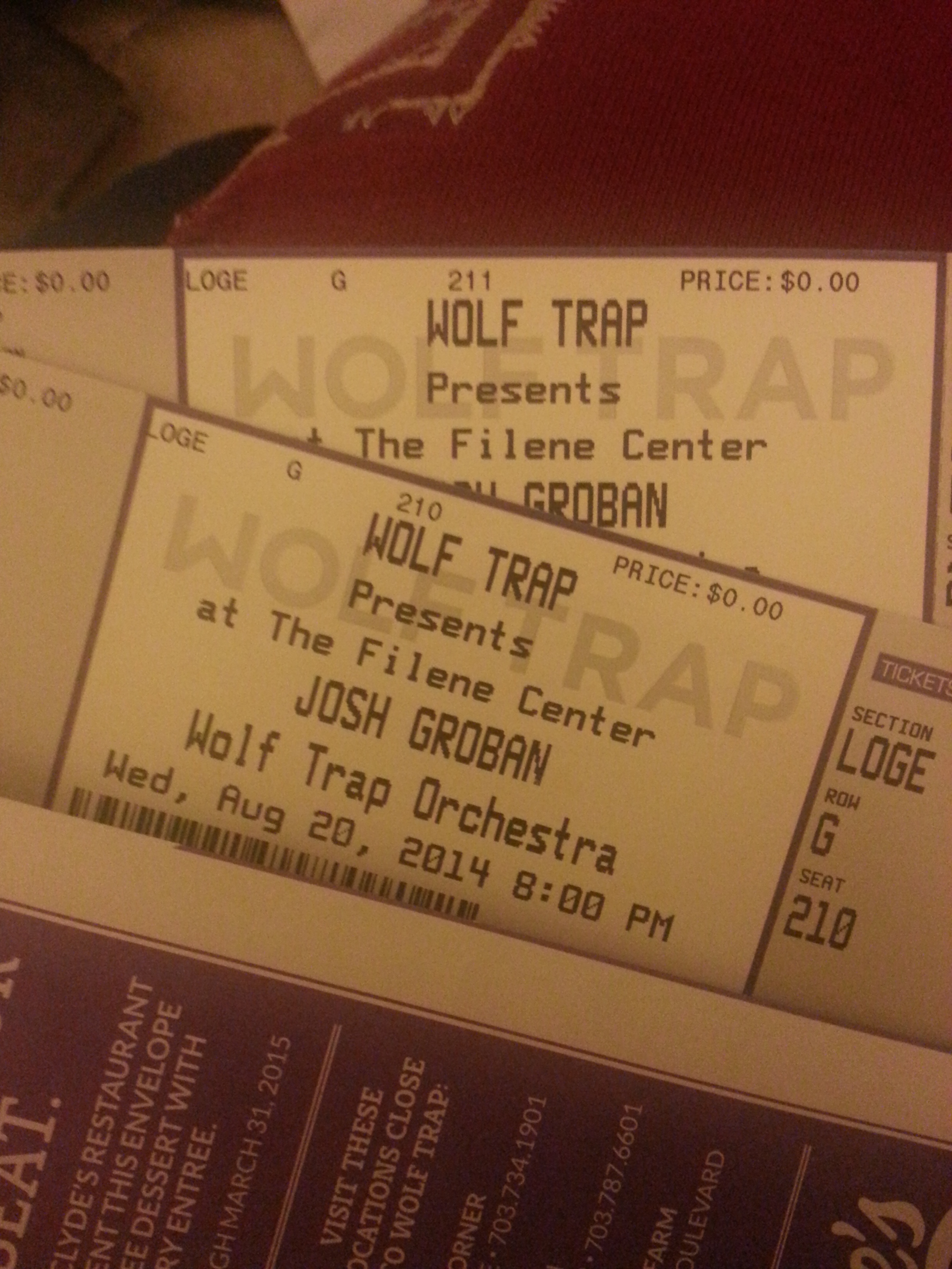I woke up on Tuesday morning to the best news ever….I won tickets to see Josh Groban! There had been a contest from the venue’s location to name your favorite JG song and I entered with saying about how I hadn’t really listened to his music until this past year and yay for “False Alarms.” Didn’t think at all that I’d win. And then boom I did. The really awesome part was that I was totally expecting lawn seats because why would they give away seats that people would pay more money for? Then I got the tickets in the mail.