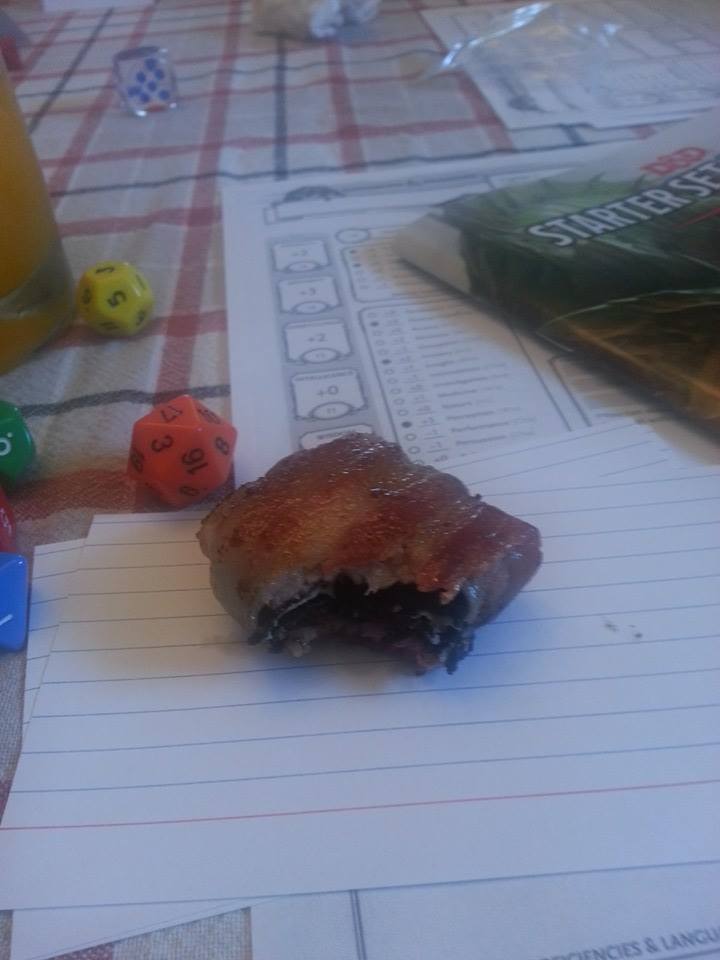 D&D – We started our campaign and I had a blast! Since we’re playing with a starter set, the story was preset though our DM tells stories very well and can ad lib on the spot. Our adventures went a little crazy because our wizard decided to go off on his own while the rest of us was battling wolves and goblins. Because of his decision we ended up getting attacked by everything in a cave with most of us basically dying before the day was over. I also now have a reputation of being a wolf slayer. There was a room with three wolves on leashes. The wizard put one of the wolves in an enchanted sleep. To save another member of our party, I shot and killed one of the wolves with my bow and arrow. And then I beheaded the sleeping wolf with my sword. Apparently it was pointless and I didn’t need to do it and I killed a defenseless animal. Sigh. I still had a lot of fun and our next session is at the end of month. We also indulged in a bacon wrapped Oreo each.
